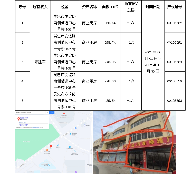該戶債權(quán)抵押物位于吳忠市友誼路中正儲(chǔ)運(yùn)中心,交通便利,西邊緊鄰乃光胡公園,風(fēng)景宜人,南邊緊鄰吳忠市利通區(qū)第十小學(xué),商業(yè)氛圍濃厚,生活配套設(shè)施完善。該抵押物周邊商鋪多經(jīng)營(yíng)超市、汽車美容等,運(yùn)營(yíng)和增值能力較強(qiáng),具有較強(qiáng)現(xiàn)金回收水平,同時(shí)便于去化。該債權(quán)已訴訟執(zhí)行,無(wú)司法障礙。